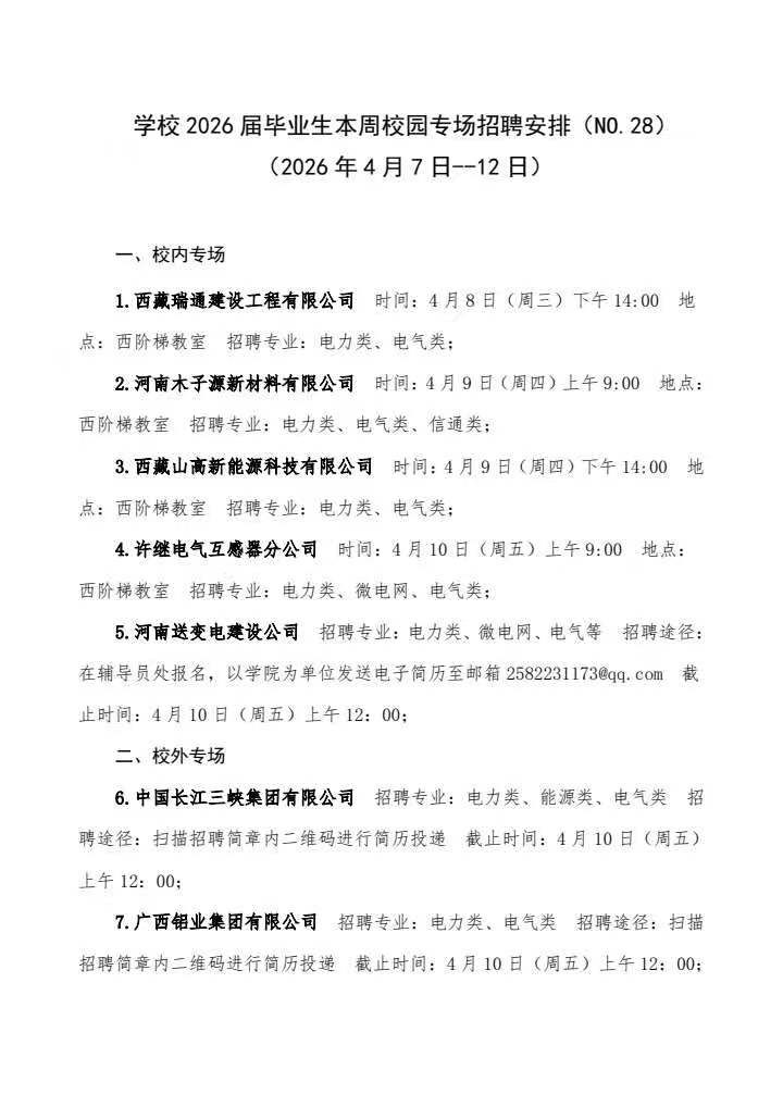 学校2026届毕业生本周校园专场招聘安排(NO.28)