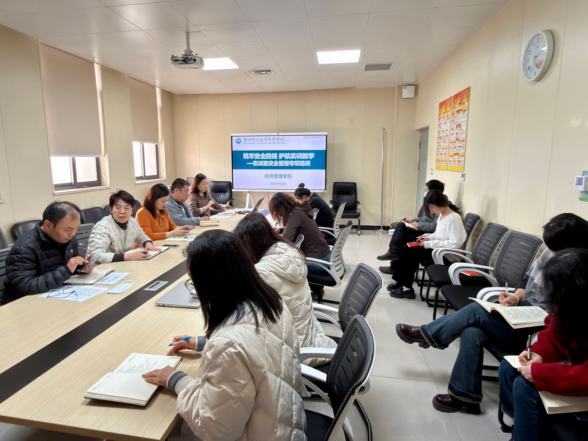 为深入贯彻落实职业院校实训安全管理相关规定,强化专任教师与实训室管理员的安全责任意识,提升实训室安全风险防控与应急处置能力,保障实训教学工作安全、有序、高效开展,12月2日,经济管理学院组织开展实训室安全管理专题培训及考核,全体专任教师、实训室管理员参加此次活动。